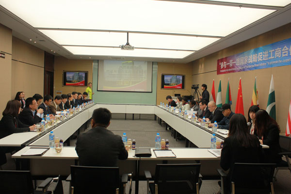 2016年4月27日,巴基斯坦山東商會考察團“參與一帶一路國家戰(zhàn)略促進工商合作”座談會,在聯(lián)橋國際大廈4樓會議中心舉行。也門全權(quán)大使艾哈邁德、坦桑尼亞全權(quán)公使喬治·馬農(nóng)紀(jì)及夫人、津巴布韋經(jīng)濟商務(wù)參贊麥克斯威爾等國外貴賓,巴基斯坦山東商會會長程曉耘、巴基斯坦山東商會威海分會會長蔡曉萌等領(lǐng)導(dǎo),以及名流集團、鹽業(yè)集團、藍星集團、魏橋紡織、威建集團等威海工商企業(yè)界的各位領(lǐng)導(dǎo)參加座談。會議由巴基斯坦(中國)山東商會主辦,聯(lián)橋集團、名流集團協(xié)辦。威海市工商聯(lián)常委、聯(lián)橋集團董事長慕镕鍵主持會議。