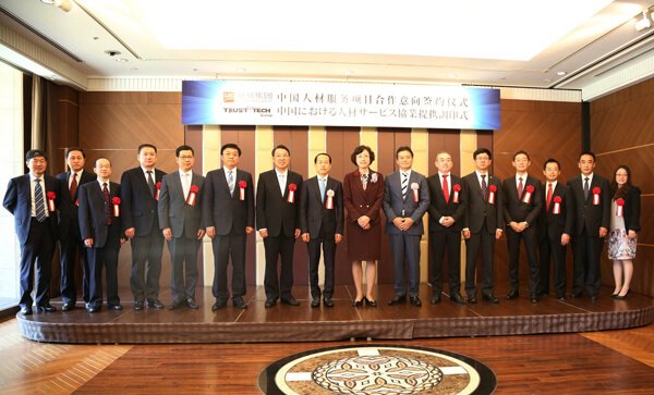 2016年5月18日上午,聯橋集團與株式會社TRUST TECH“中國人材服務項目合作意向簽約儀式”在東京舉行,聯橋集團董事長慕镕鍵與株式會社TRUST TECH社長西田穣代表雙方簽署了合作協議,威海市委副書記、市長張惠,高區黨工委書記、管委會主任劉偉,威海市商務局局長鄧勇,聯橋集團董事、副總經理于福杰等領導出席儀式。