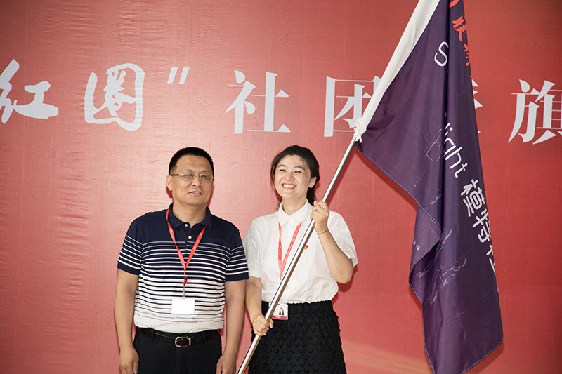 下午3點(diǎn),授旗儀式正式開始。在歡快的音樂聲中,各名譽(yù)團(tuán)長分別為自己“代言”的社團(tuán)授旗。