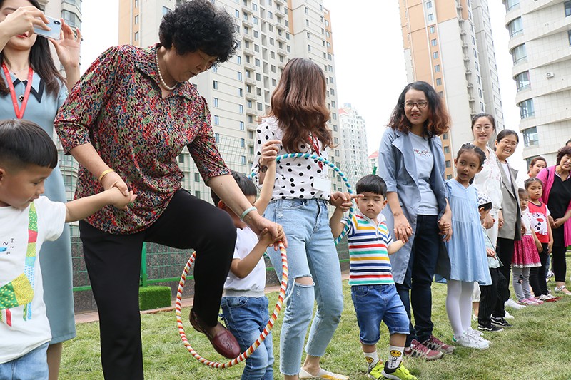 當歡快的音樂聲響起,兩名老師帶領家長和孩子們跳起了舞蹈。大手牽小手,燦爛的笑容,俏皮的動作,一段美妙的親子時光慢慢上演。