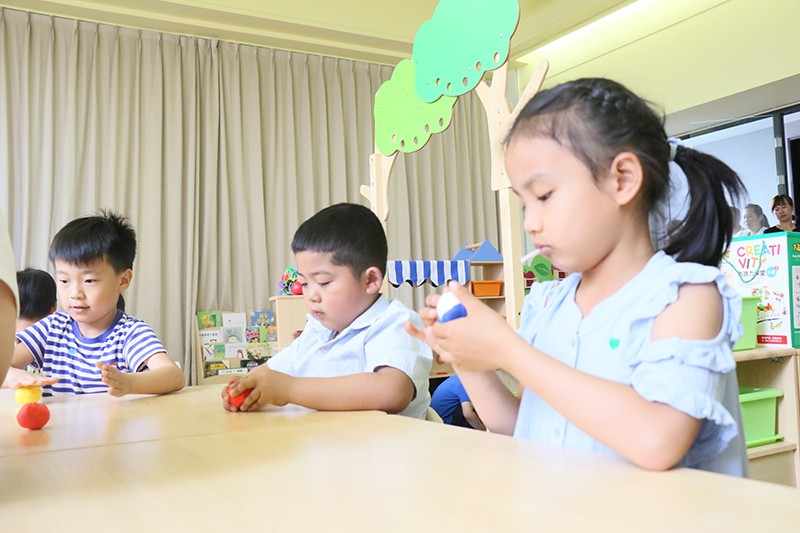 隨后,兩名老師帶領孩子們進行了體驗課。在老師的示范引領下,孩子們手中的橡皮泥,變成了一個個可愛的卡通形象。室內孩子們玩得不亦樂乎,室外是家長們溢滿幸福的笑臉。