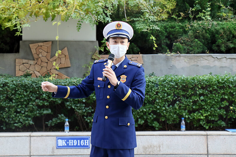 演練現場,高區消防救援大隊參謀鄭巍結合近年來國內外發生的典型火災案例,用通俗易懂的語言向參訓員工講解了火災的發生及危害,日常生活中如何去檢查和整改火災隱患,發生火災時如何及時報火警,怎樣組織人員撲救初起火災,火場中如何逃生自救等知識。
