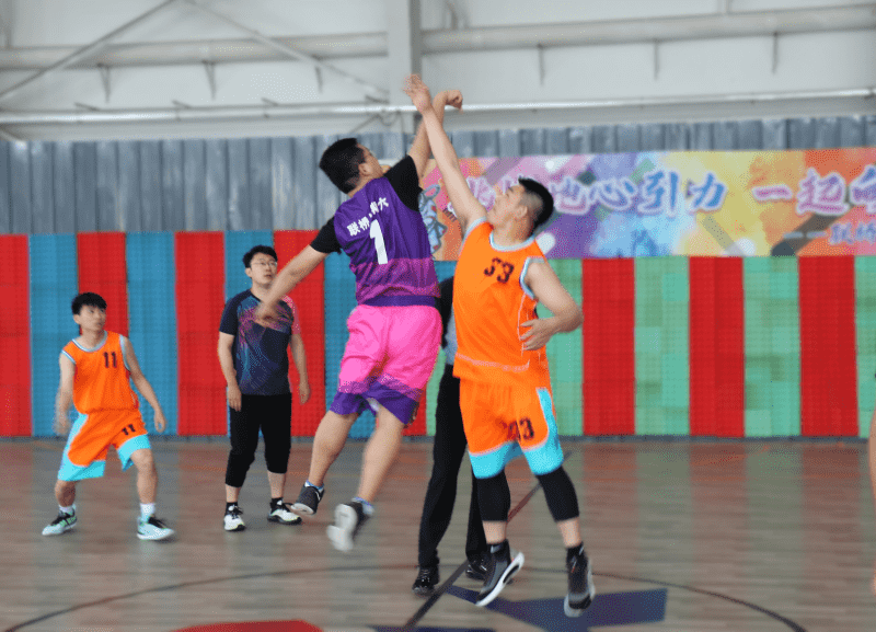 跳球、長傳、快攻、投籃,集團總部隊以迅雷不及掩耳之勢、一氣呵成完成系列動作,迅速拿下首分,把眾人帶入狀態;塑料新材隊也毫不示弱,新銳出擊,勢不可擋,馬上一記三分予以回應。比賽不斷進行,雙方比分交替上升,你方投籃精準,我方防守積極,雙方球員你爭我奪、互拼互搶,首場比賽就把現場氣氛帶入高潮。球場上熱血澎湃,觀眾席也一片沸騰——吶喊助威,拍手叫好。聯橋人的熱情在初夏驕陽的襯托下,更加生機蓬勃。
