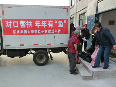 值新春佳節來臨之際,聯橋集團黨委副書記宋威麗帶領集團辦公室相關人員來到對口幫扶村——初村鎮紀家口子村,為該村的村民們送去了鲅魚、刀魚等年貨,在寒冷的冬日里為村民們傳遞了聯橋人的愛心與溫暖,增添了節日的歡樂氣氛。