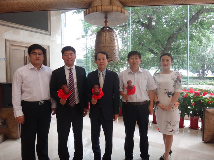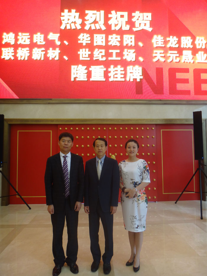 8月22日,在北京舉行的“新三板”掛牌儀式上,伴隨著喜慶熱烈的掌聲,聯橋集團董事長慕镕鍵,聯橋集團董事、聯橋新材總經理慕衛波,威海高技術產業開發區經濟發展局局長田曾福共同敲響開市寶鐘,標志著集團公司進入多層次資本市場實現新的突破。出席掛牌儀式的還有威海高區金融辦主任周芊,上海證券公司經理馬奕彤,聯橋新材副總經理李曉妹等。