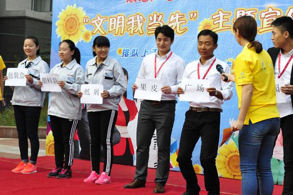 活動現(xiàn)場集團(tuán)歌伴舞節(jié)目《春暖花開》載歌載舞,優(yōu)美的舞姿,動人的歌聲詮釋了美的理念,愛的魅力。主播團(tuán)小合唱《文明家園》,聲情并茂,將文明的情感與和諧的君子風(fēng)氣融入到歌曲的主旋律里,讓人深感共鳴。聯(lián)橋集團(tuán)員工代表與主播團(tuán)成員一起進(jìn)行文明宣講,講述身邊的文明知識和文明小事,讓每個人意識到文明就在我們身邊,只要有心就可以傳遞文明的理念、進(jìn)行文明的行動。簡單有趣的“文明蘿卜蹲”互動游戲,讓大家對排隊(duì)上下車、禮讓斑馬線、不亂扔雜物等文明行為有了更為深刻的理解和認(rèn)同。